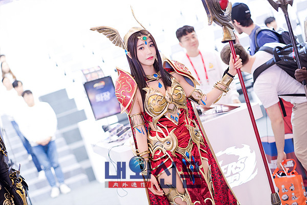 넷마블 부스의 모델 임솔아가 포즈를 취하고 있다.
