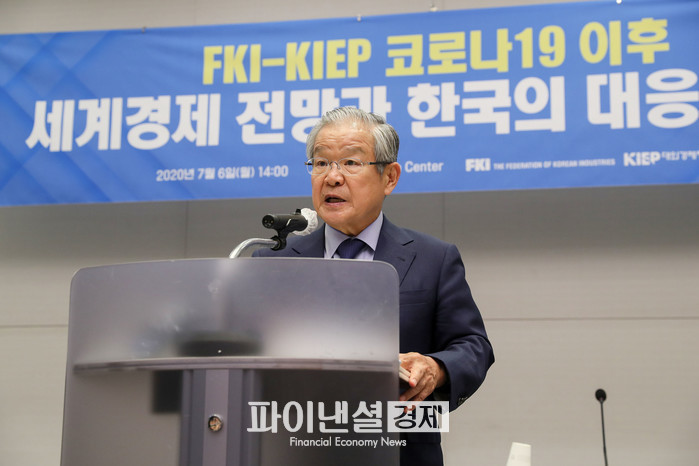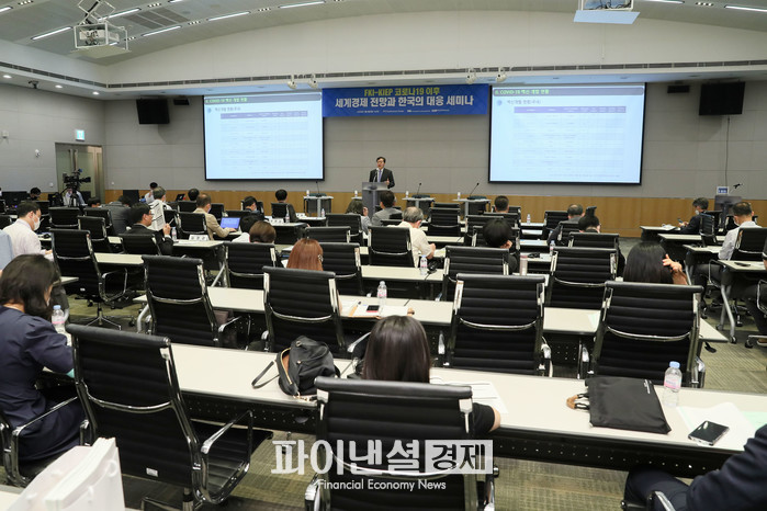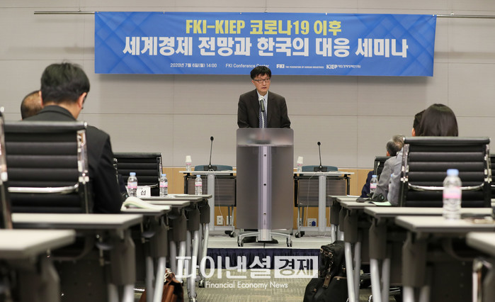 [파이낸셜경제=김윤정 기자] 전경련은 KIEP(대외경제정책연구원)와 공동으로 7월 6일(월) 오후 2시 전경련 컨퍼런스센터에서 「코로나19 이후 세계경제 전망과 한국의 대응 세미나」를 개최했다. 이번 세미나는 코로나19 이후 나타나고 있는 글로벌 경제 메가트렌드 변화, 관련 치료제.백신 상용화 전망을 공유하여 대외리스크를 최소화하기 위한 취지에서 열렸다.
