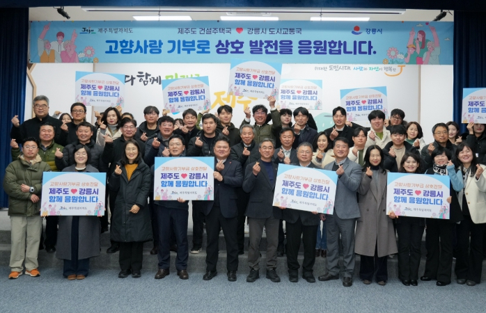 [파이낸셜경제=김영란 기자] 제주특별자치도 건설주택국은 강릉시청 도시교통국과 함께 고향사랑기부제를 통한 지역 상생협력 실천을 위해 양 지자체 간 상호 교차 기부를 추진한다고 밝혔다.