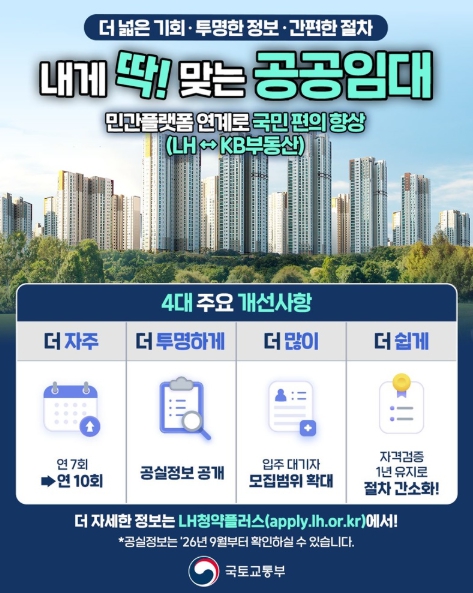국토교통부, 공공임대 이제 더 자주·쉽게 찾을 수 있습니다