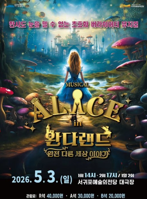 [파이낸셜경제=김영란 기자] 서귀포예술의전당은 5월 가정의 달을 맞아 뮤지컬 '이상한 나라의 앨리스: 완다랜드'를 5월 3일 오후 2시와 5시, 총 2회에 걸쳐 서귀포예술의전당 대극장에서 선보인다.