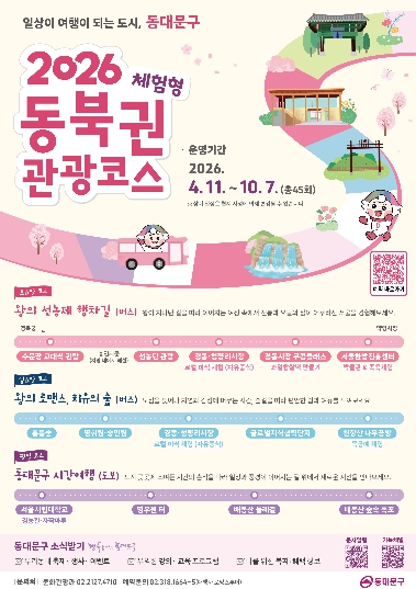 [파이낸셜경제=금윤지 기자] 서울 동대문구는 지역의 역사·문화·체험 자원을 연계한 ‘2026 동대문구 동북권 체험형 관광 코스’를 4월 11일부터 10월 7일까지 운영한다고 밝혔다.