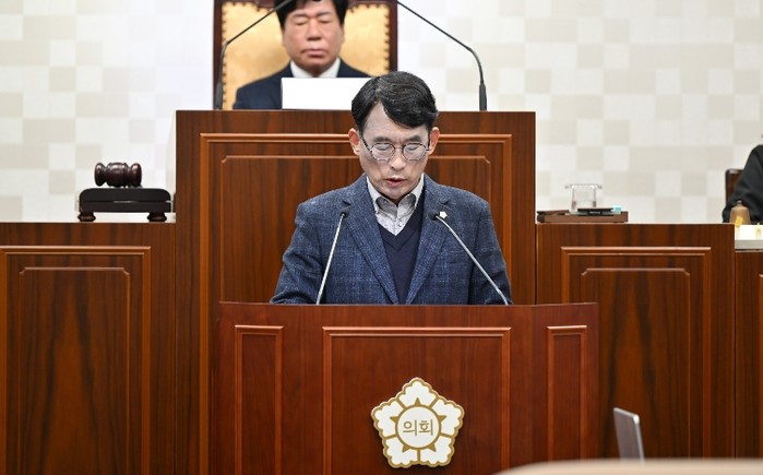 | ▲ 해운대구의회 김상수 의원이 제293회 임시회 본회의에서 5분 자유발언을 하고 있다. |