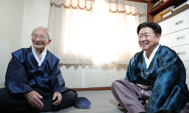 [파이낸셜경제=김영란 기자] 오영훈 제주특별자치도지사는 설 명절을 맞아 18일 도내 유일한 생존 독립유공자인 강태선 애국지사의 자택을 방문해 세배하고 새해 인사를 나눴다.