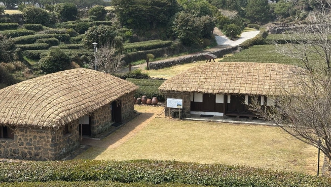 제주농업생태원 내 전통초가는 제주의 생활양식을 반영한 안거리·밖거리 구조로 조성돼 있으며, 방문객과 관광객에게 지역 문화를 소개하는 공간으로 활용되고 있다.