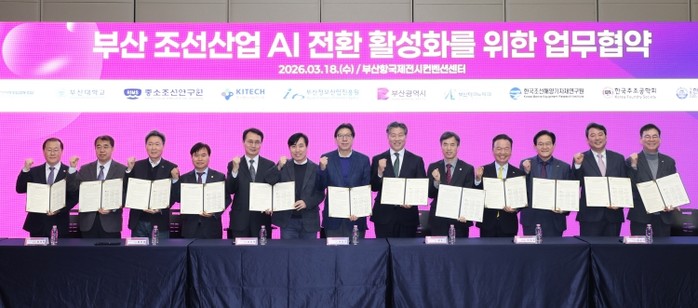 협약에는 시를 비롯해 한국생산기술연구원, 한국조선해양기자재연구원, 중소조선연구원, 한국주조공학회, 한국산업지능화협회, 부산벤처기업협회, 부산조선해양기자재공업협동조합, 부산대학교, 국립한국해양대학교, 부산정보산업진흥원, 부산테크노파크 등 12개 기관이 참여했다.